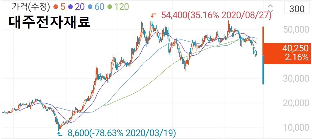 - 21년 3월 2일 종가 40,250원 (2.16% 상승)