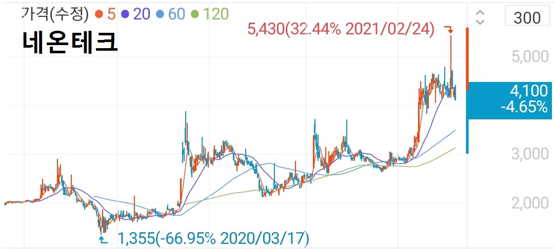 - 21년 3월 2일 종가 4,100원 (4.65% 하락)