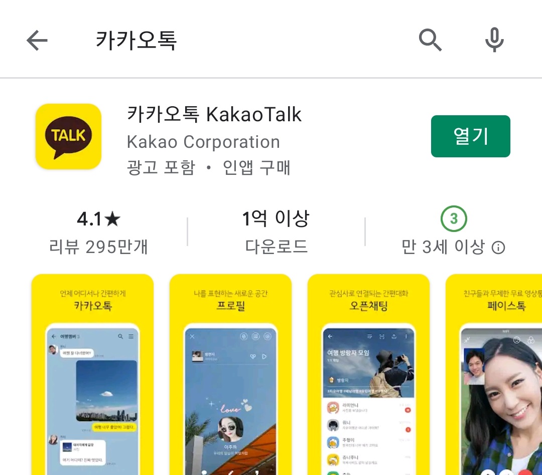 혹시나 카카오톡이 최신 버전으로 되어있지 않을 경우, 업데이트해줍니다.