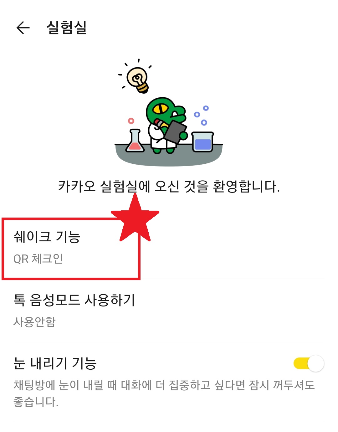 그럼 카카오톡 쉐이크 기능 QR체크인 on 하러 가볼까요?