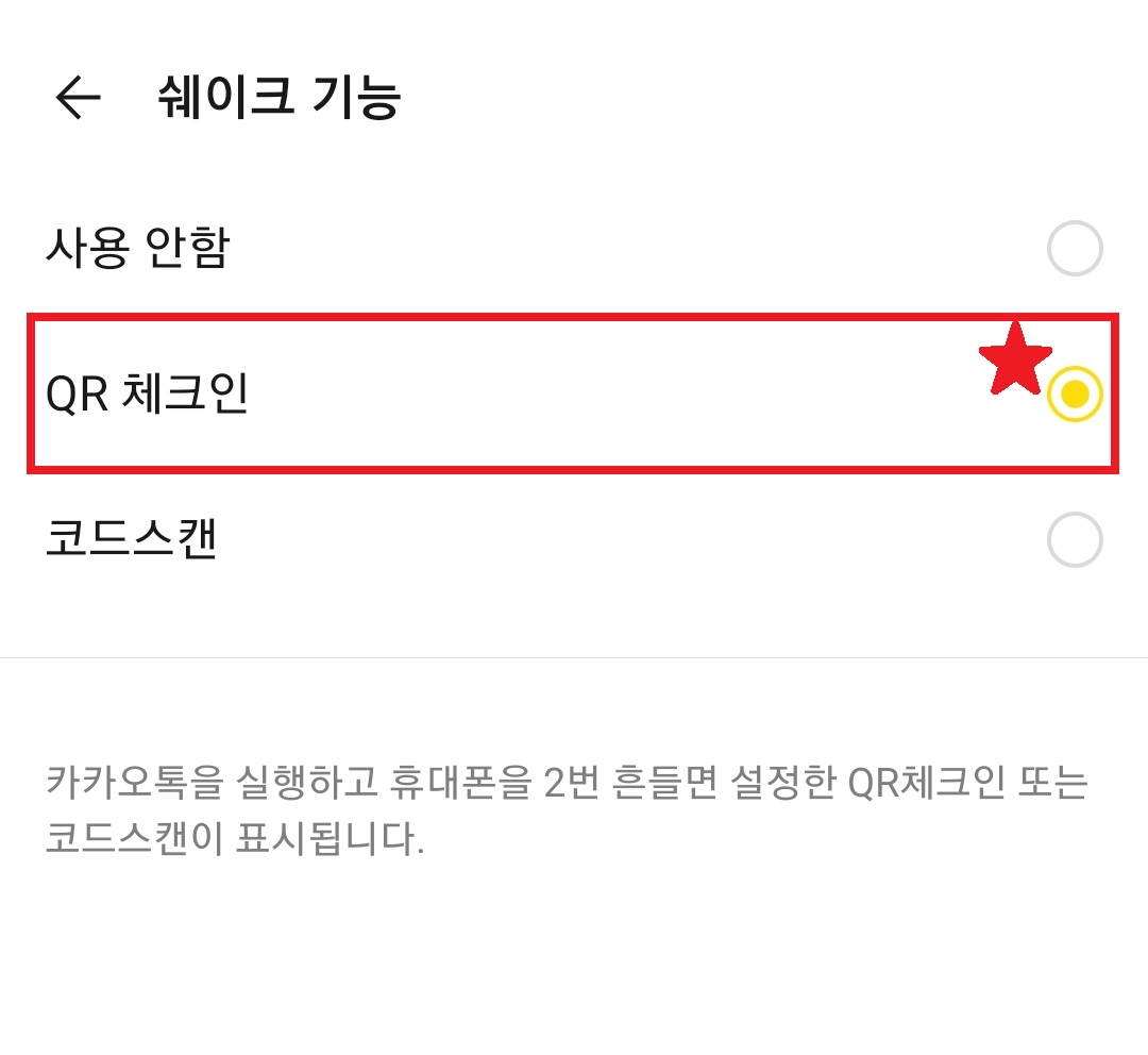 카카오톡 쉐이크 기능 QR체크인 설정 잘 되셨나요?