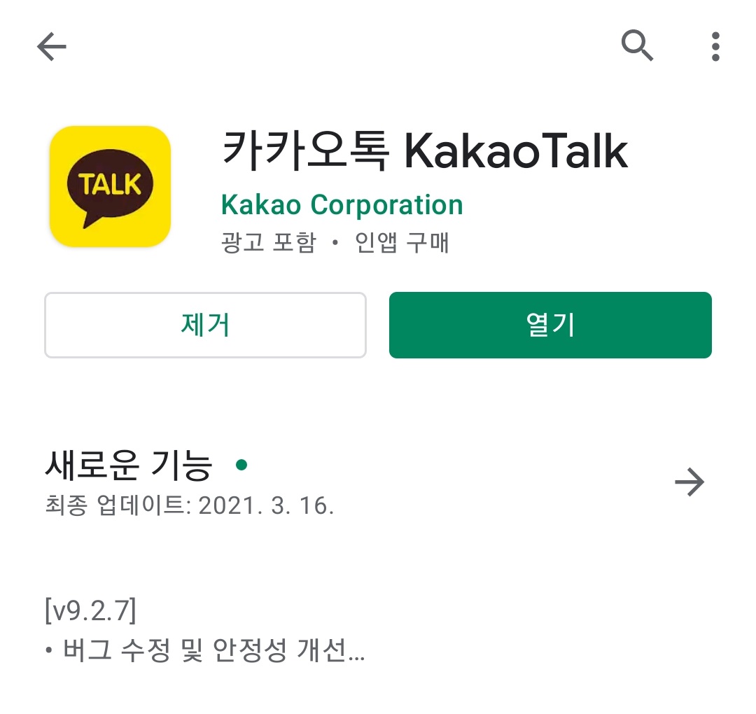 1. 카카오톡 업데이트 : 2021.3.16 v9.2.7 버전 이상