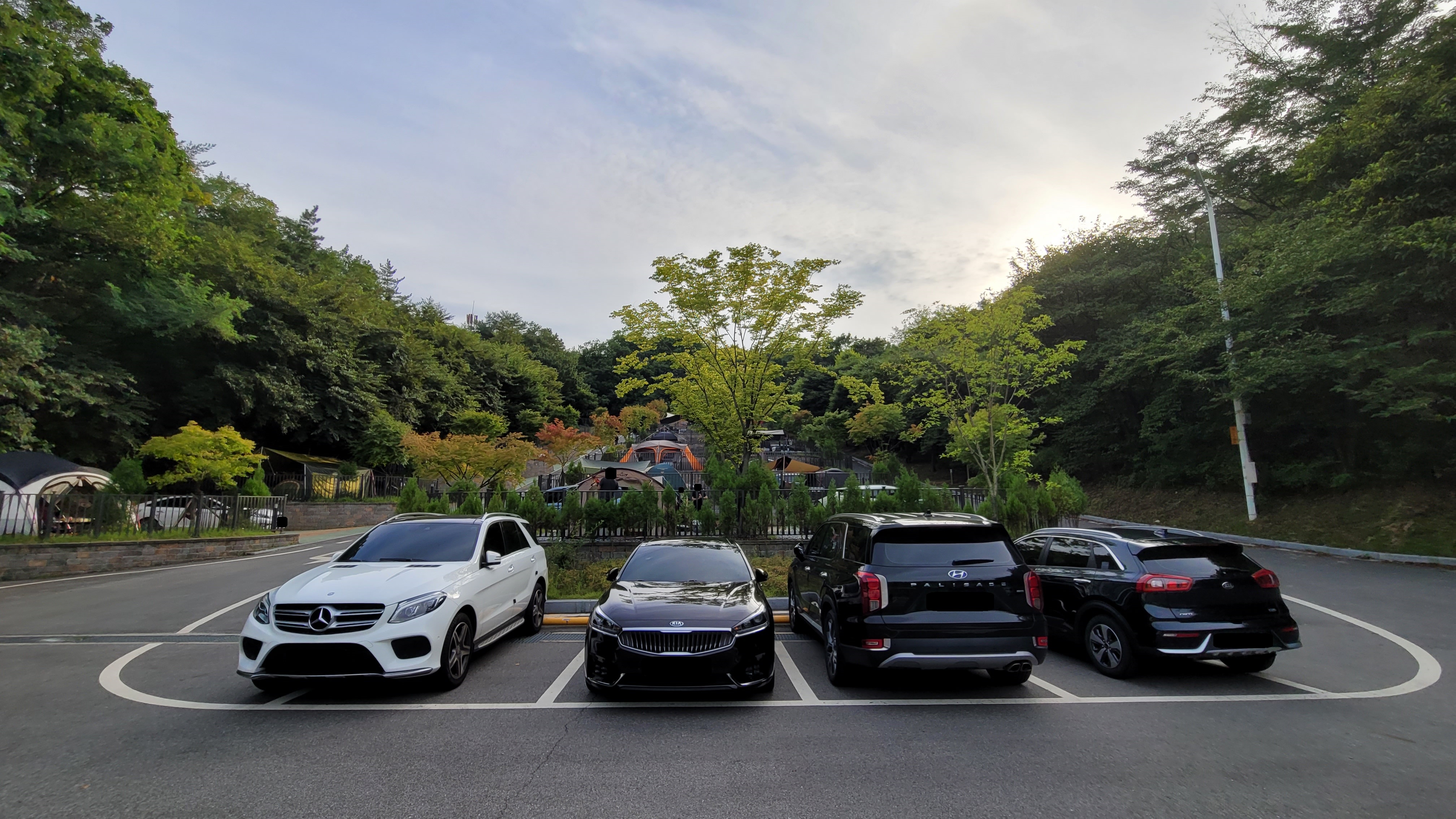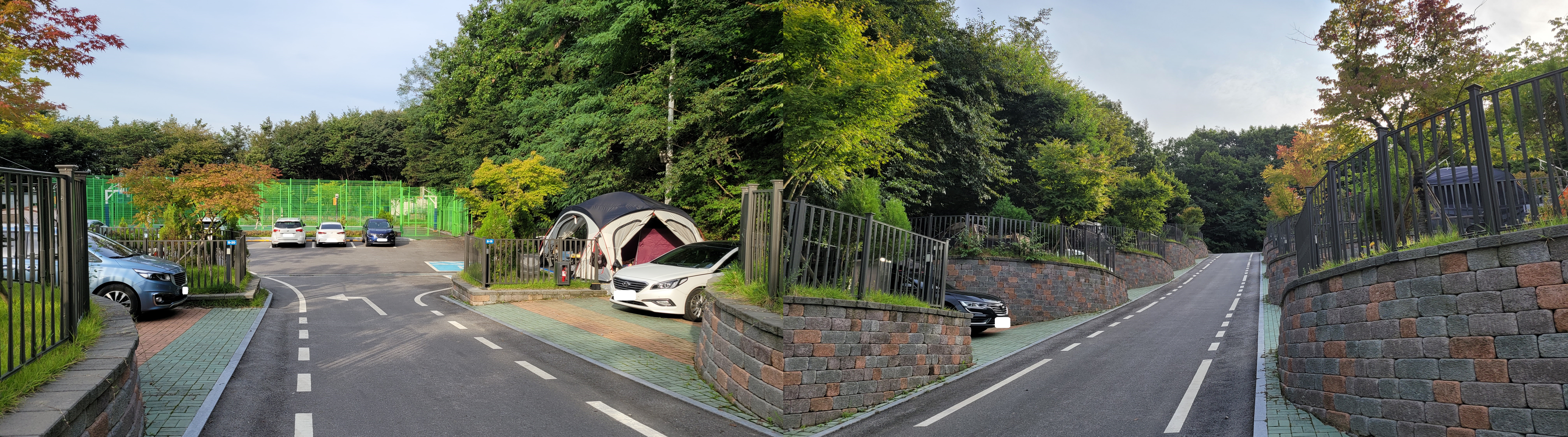 언덕 아래로 내려와 오토캠핑장을 찍은 사진입니다. 아래에는 주차할 수 있는 구역이 있는데요, A지구 분들과 방문객들의 주차장으로 추정됩니다. 가을이 벌써 왔습니다. 단풍나무의 끝들이 빨갛게 물들기 시작했네요.