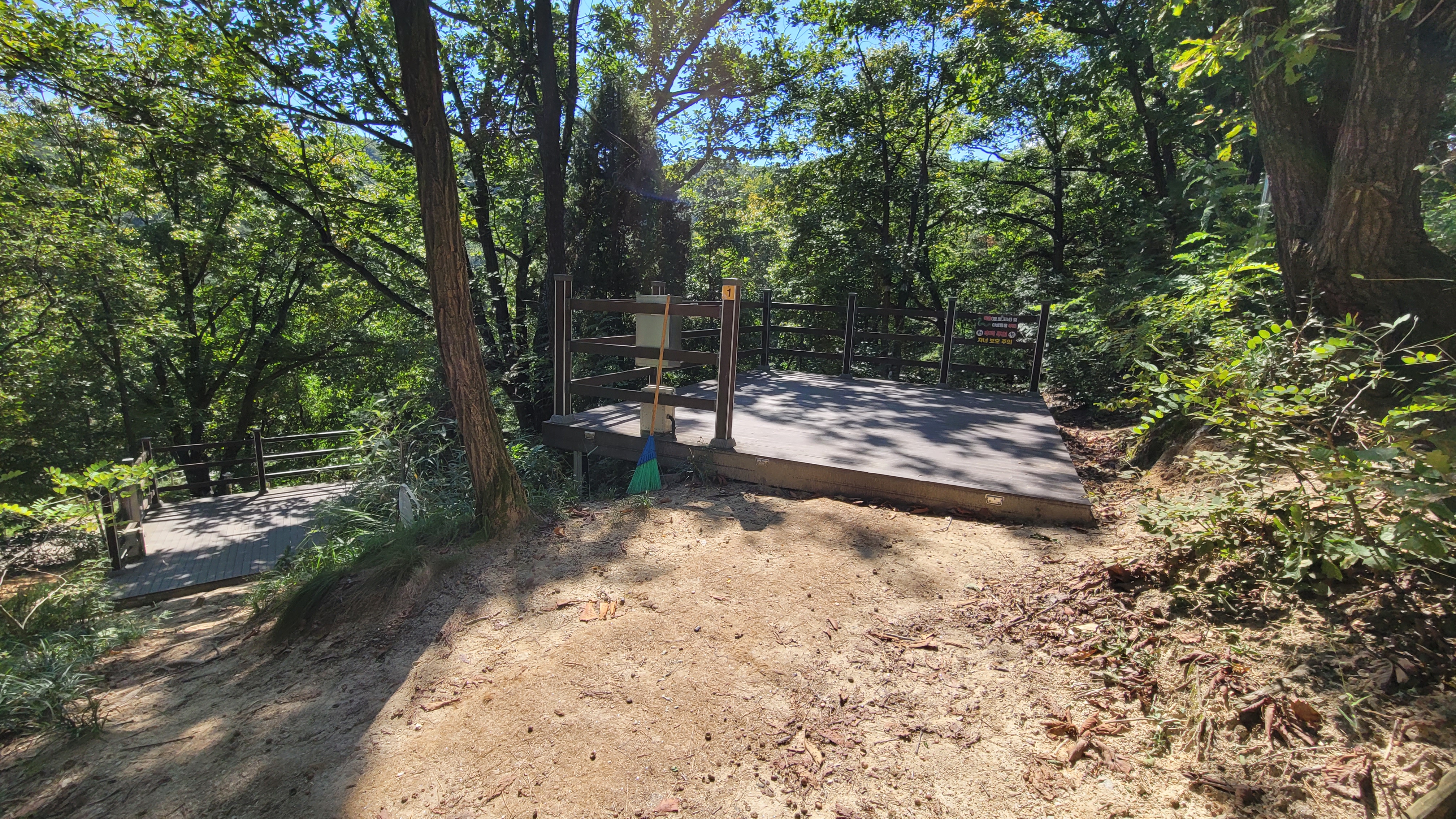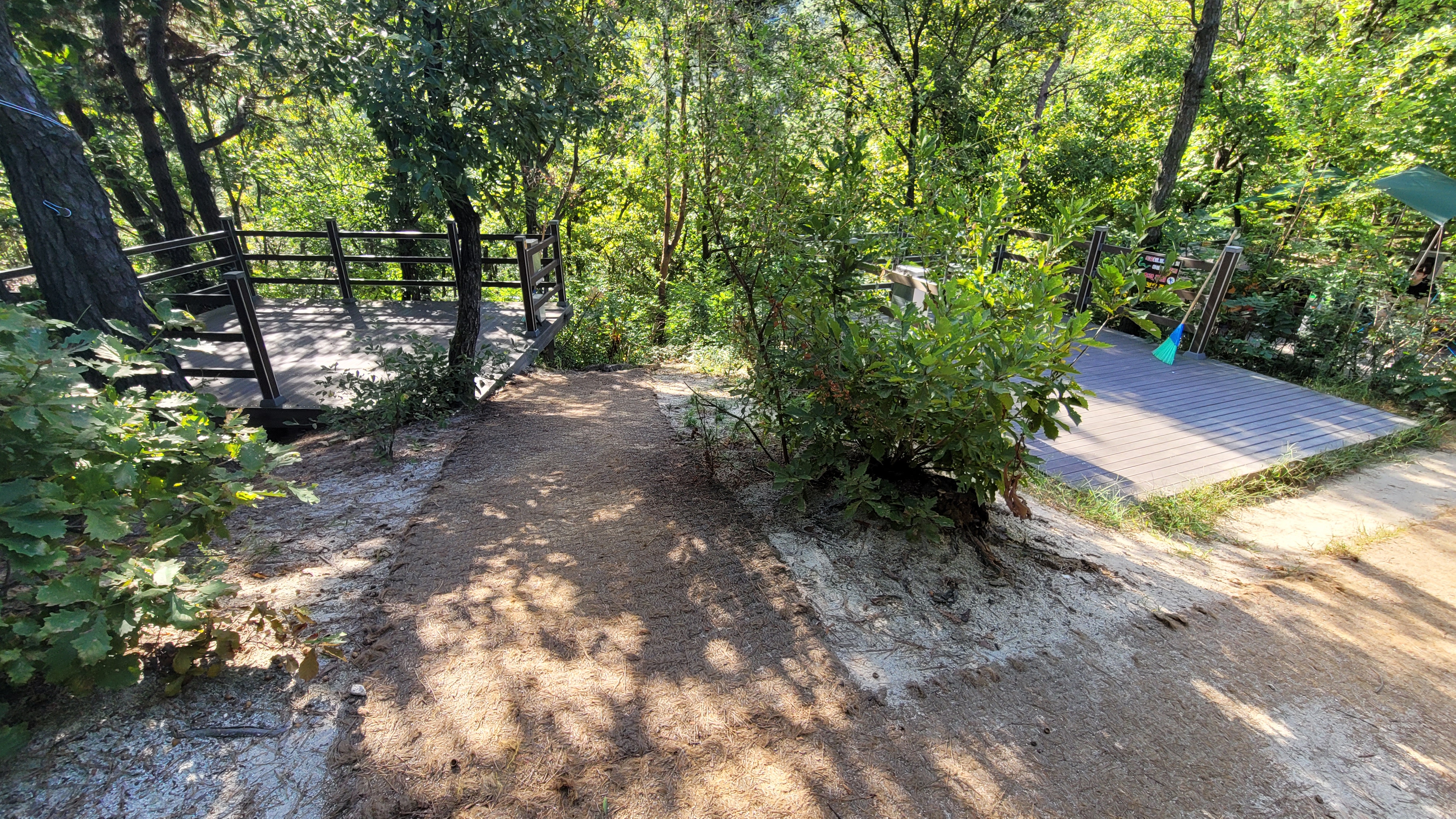 6번 데크는 특이한 점 없이 앞선 사진의 5번 데크 옆에 동일한 방향으로 위치하고 있습니다. 7번 데크는 6번 옆에 난 짧은 내리막 길 밑에 있습니다. 이 내리막길로 짧지만 꽤 가팔라 굳이 수레를 내릴 필요가 있을까 싶습니다.