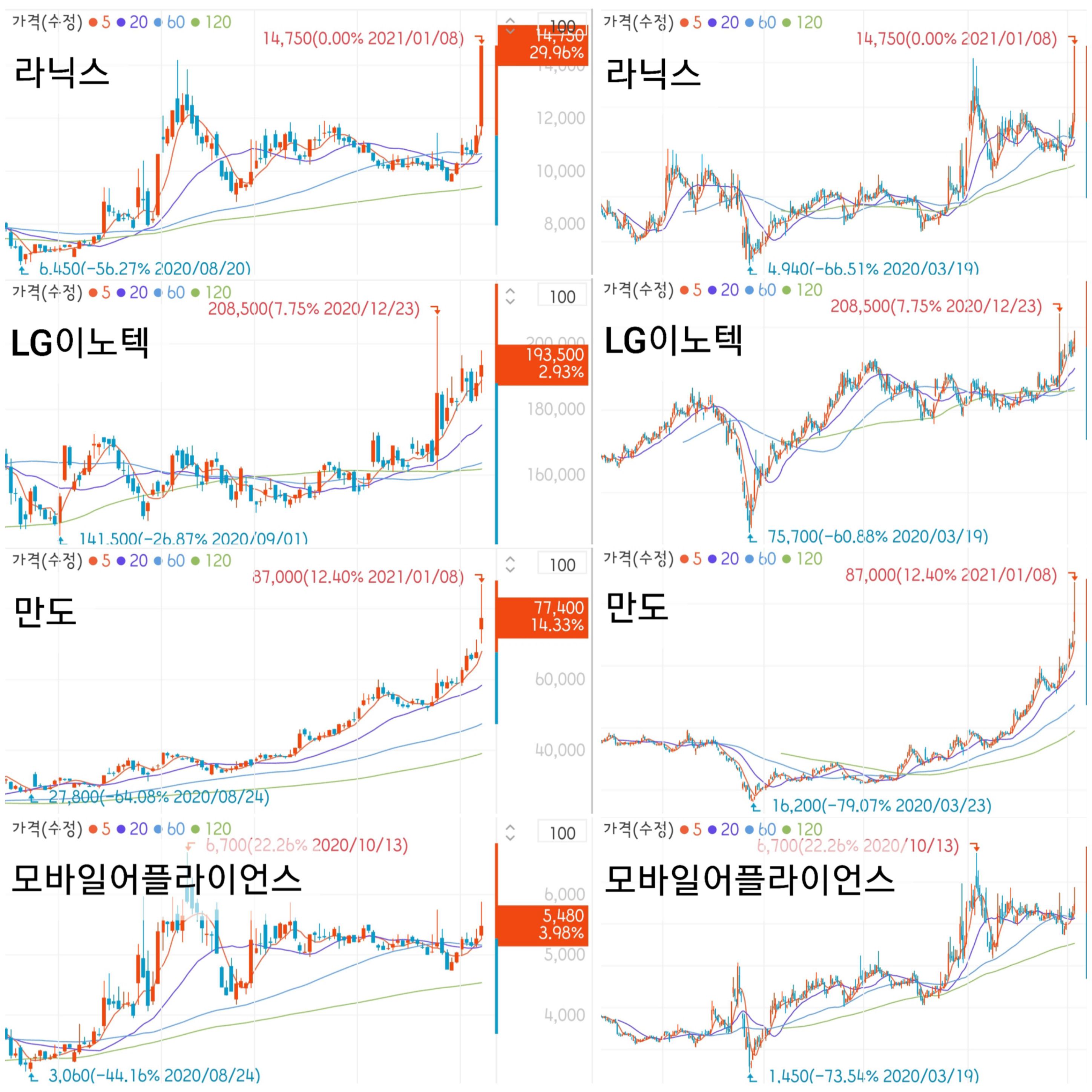 [주식][1월5일] 종목별 차트 모아보기 - 반도체, 2차전지, 5G 관련주 (0) | 2021.01.06 |